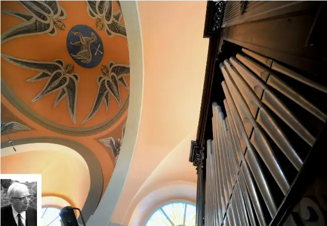 A Magadino il parroco Lanini compie un’altra impresa: “Contro il parere della Commissione di Arte Sacra della Diocesi e sotto gli improperi di Piero Bianconi” chiama ad affrescare la chiesa il pittore tedesco Richard Seewald (18891976). In verità le figure maestose di Seewald valorizzano mirabilmente gli spazi della chiesa del Moraglia e sembrano un complemento insostituibile anche all’ascolto dell’organo.